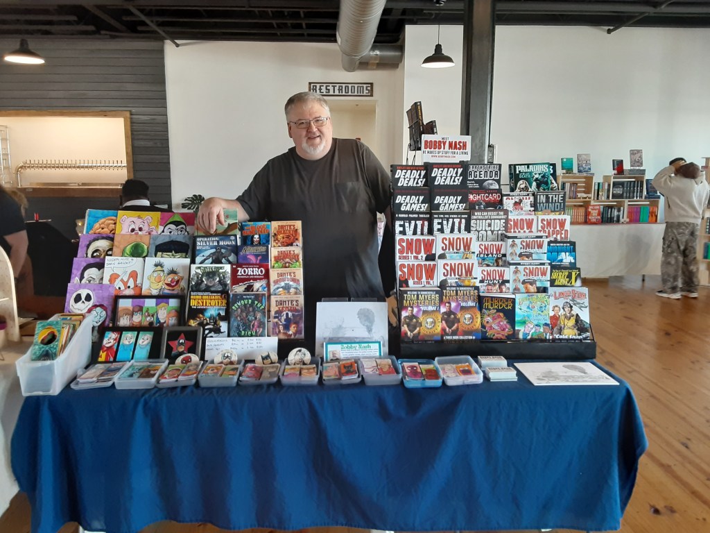 Hi. I’m Bobby Nash. I am a writer and artist from Georgia. I write novels, comic books, short stories, audio dramas, screenplays, and occasional essays. My first professional, non-school published piece happened in 1992. In 2005, my first novel debuted and it’s been pretty steady busy since then. At last count, January 2026, I have 219 published stories. It breaks down to 45 novels/novellas/collections, 101 short stories/anthologies, 63 comic books/graphic novels, 8 original short film screenplays, and 4 original full-cast audio scripts. I don’t have a total count on essays, articles, and the like. A few of them won awards, which is very gratifying.